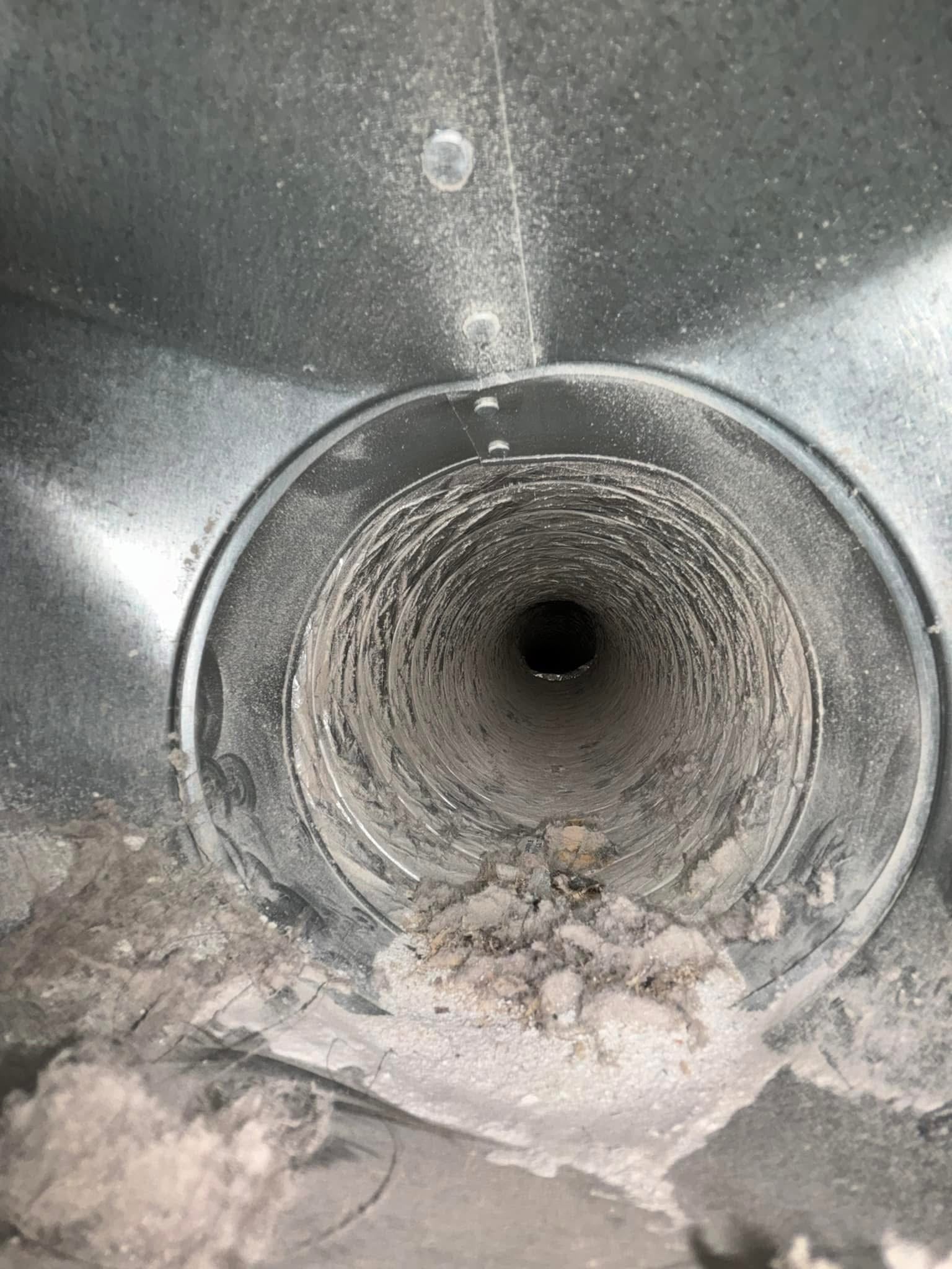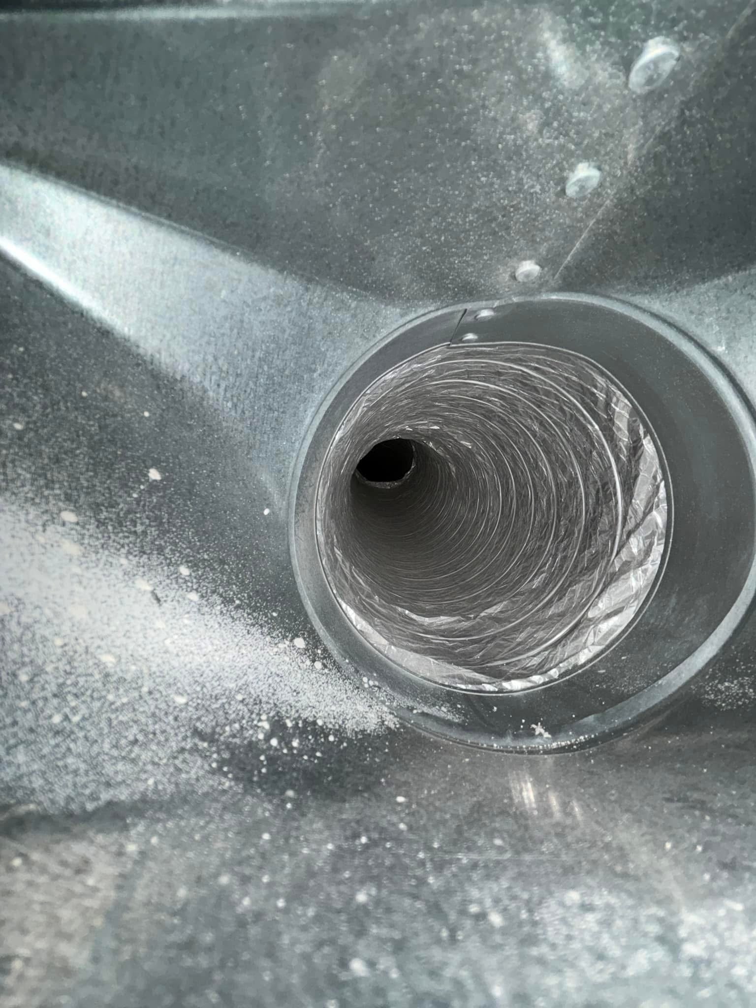 Dryer Vent Cleaning: When dryer vent cleaning we first start by taking the hose off of your dryer. Then we run our small spinning brush and vacuum all the way through your dryer vent until we leave it looking brand new. This will help reduce energy costs, clothes dry faster, and reduce the risk of fire!